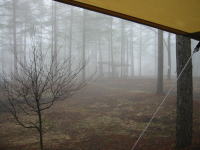 山の裏側の世界はがらっと変わって視界数メートルの深い霧。