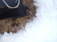 焚火の熱で、いつの間にか雪が溶けています。溶けた部分がささくれ状態になっていて不思議。 |