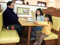 早速、出来上がった写真をマキちゃんに自慢中。 |