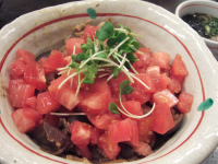 飛騨牛を使った牛丼にフレッシュトマトが乗っけてあって、これが中々イケます(^^)v |
