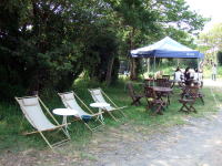 炊事棟の正面にはくつろぎのスペースがあります。雰囲気抜群。 |