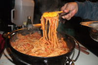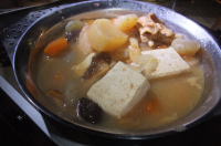 | 当初は簡単に出来るパスタにしようと材料をそろえたんですが、余りの寒さにイタリアン鍋に変更。。 |