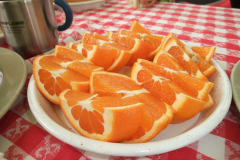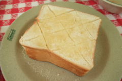 朝食は長い食パンのかたまりを好きな厚さに切って