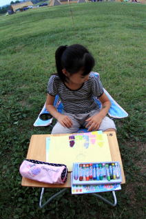 いつもの真っ赤なキッズチェアは座面の生地が裂けちゃったので、スノーピークの工場にピットイン中です。なのでのどかはコールマンチェア(^^ゞ |