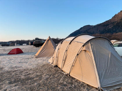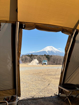 富士山に向かって下る緩やかな傾斜がありますので、他の方のテントやタープが富士山を遮りません。