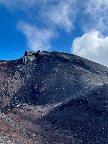 馬の背を登り切れば 日本最高峰富士山山頂 剣ヶ峰に到着 日本最高地点 3,776m