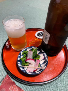 旨そうな岩魚を見ながら(笑) 夕食前に一杯