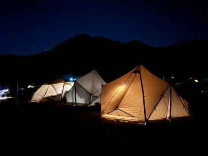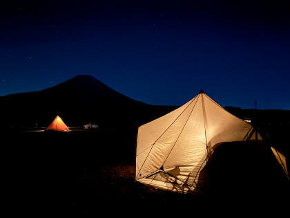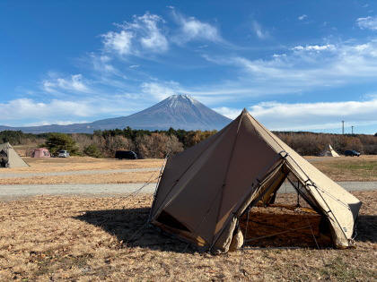 富士山に向かって下る緩やかな傾斜がありますので、他の方のテントやタープが富士山を遮りません。