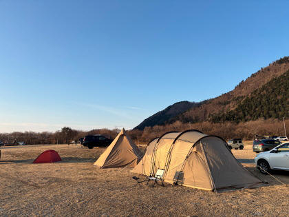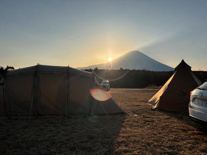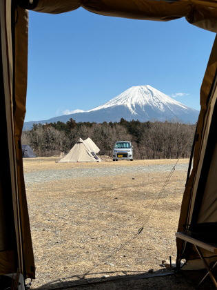 富士山に向かって下る緩やかな傾斜がありますので、他の方のテントやタープが富士山を遮りません。