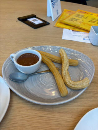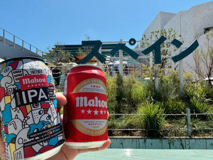 お昼は スペイン館のレストラン「エチョス」(^_-)-☆ レストラン行列のお愉しみに スペインビールをゲット(#^^#)