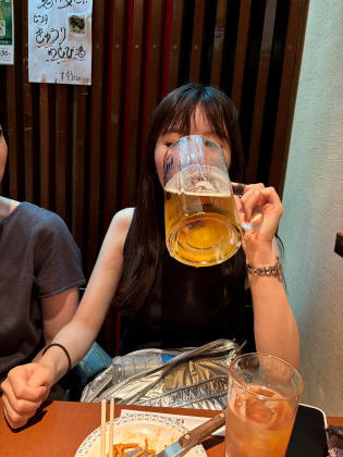 大ジョッキ娘(爆) そんな訳ないですね ぼくのジョッキでビールの味見中です(^^;
